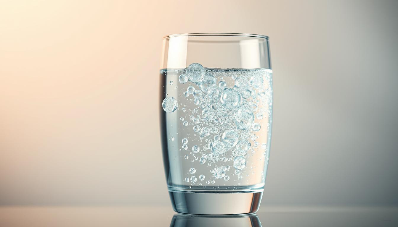 A glass beaker filled with crystal-clear, effervescent hydrogen-enriched water, set against a backdrop of a sleek, modern medical laboratory. The water gently bubbles, reflecting the soft, indirect lighting that illuminates the scene. In the foreground, a stack of medical charts and reports suggests the connection between this innovative water and its potential cardiometabolic benefits, such as improved lipid profiles, blood glucose regulation, and vascular function. The overall atmosphere conveys a sense of scientific inquiry and the pursuit of holistic wellness solutions.