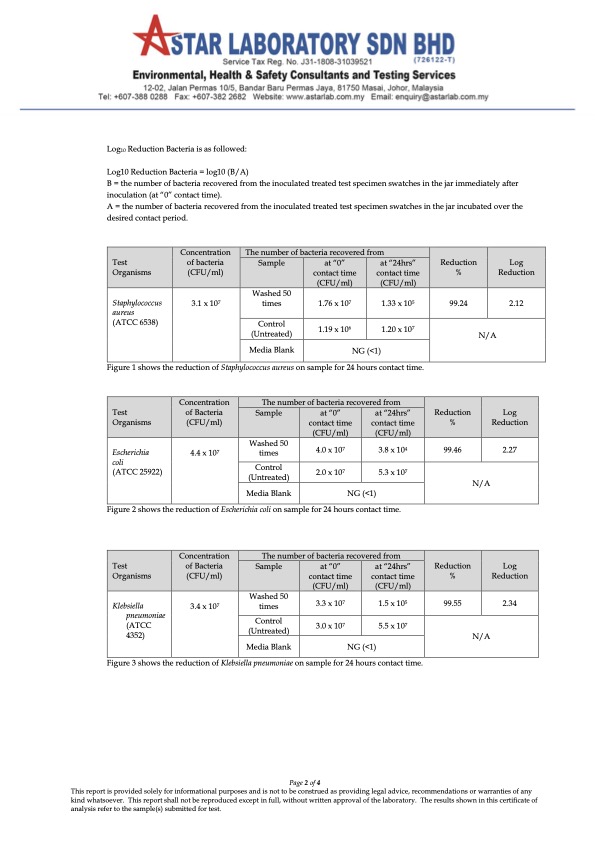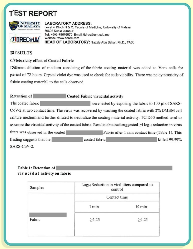 Efficacies tested and confirmed by STAR Lab & SGS Lab, University Technology Malaysia, and University of Malaya